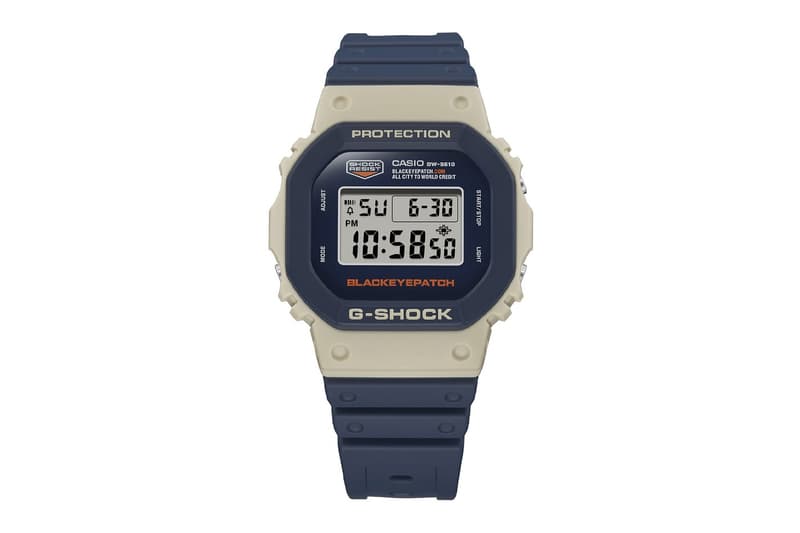 BlackEyePatch x G-SHOCK DW-5610BEP-2 採用由米、海軍藍 2 色組成,展現簡約樣貌,錶身散發出工業設計元素,錶盤印有橙色的 BlackEyePatch 字樣,金屬錶背則刻有 BlackEyePatch 和「純正商品」字樣,彰顯聯名身份;當腕錶開啟背光模式時,顯示器也會顯示「GENUINE PRODUCT」、「純正商品」字樣,配上印有滿版品牌 Logo 的包裝盒,讓整個系列更加完整。