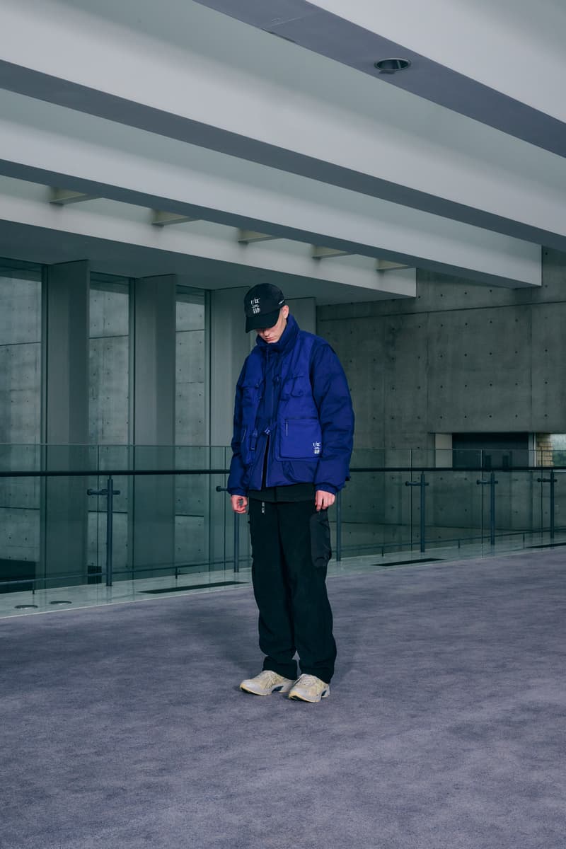 設計此聯名系列時,山根敏史將 F/CE.® 的服裝技術與細節疊加在 GAP 獨有的美式風格上,例如 F/CE.® 標誌性的可拆卸穿搭設計運用在多款外套上,類似釣魚服的功能性口袋則在大學衣、背心與長褲上處處可見,並應用顏色與材質上的對比凸顯細節,展現科技與機能感。